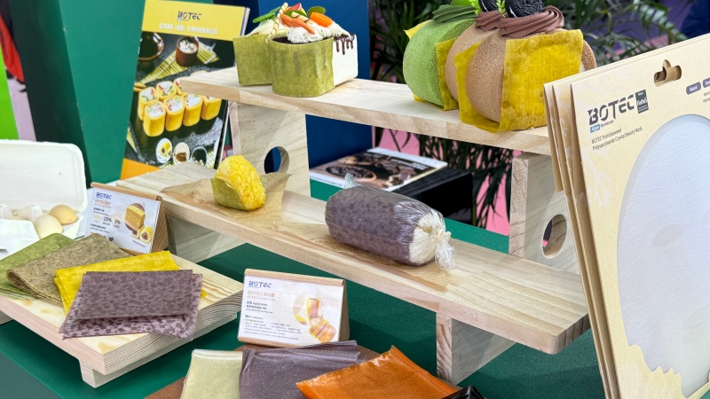 可食用藍海藻膜,應用於多彩蛋皮、大豆蛋白膜皮,包裹飯團、肉卷、壽司,顏值高且天然安全。